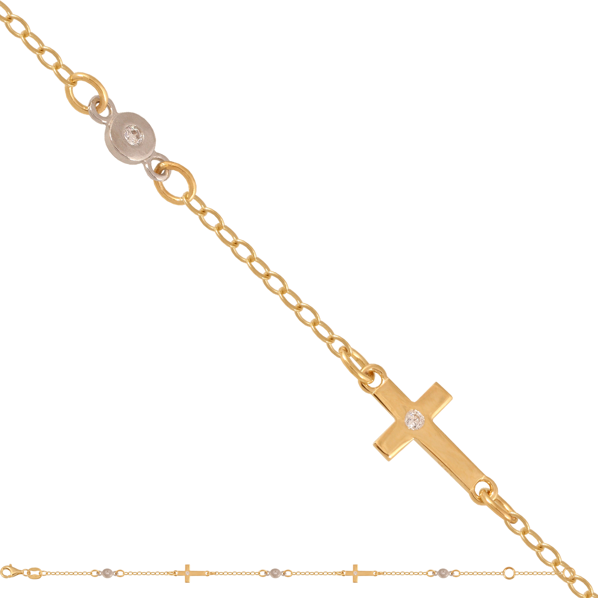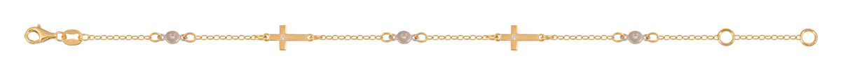 uwagi: Bransoletka z krzyżykami i kółeczkami. Połączenie żółtego i białego złota. Możliwość regulacji długości do 17cm.