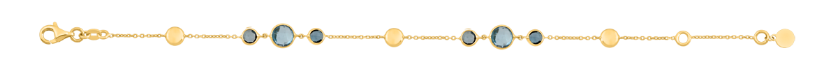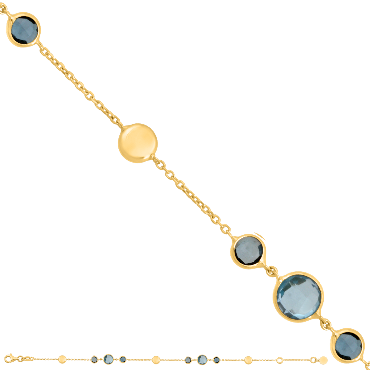 ID: #20424 symbol: 20424 EAN: 5900025204245 długość: 19 cm uwagi: Ankrowa bransoletka zdobiona elementami z kamieniami w odcieniach błękitu, oraz złotymi centkami. Możliwość regulacji do 17cm.. średnica: 0.8 mm