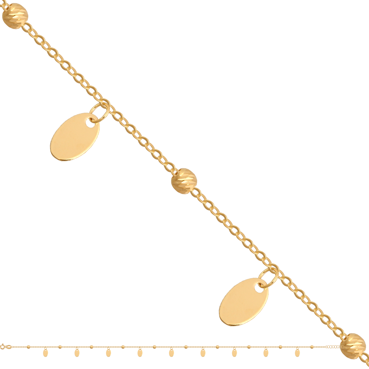 uwagi: Ankrowa bransoletka, ozdobiona grawerowanymi kulkami i blaszkowymi zawieszkami. Możliwość regulacji do 17cm.