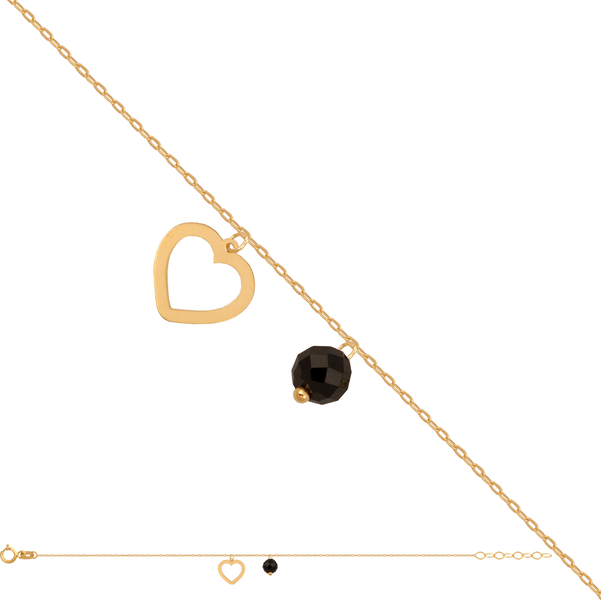uwagi: Delikatna bransoletka z serduszkiem i czarnym kamieniem.Możliwość regulacji długości do 17cm.