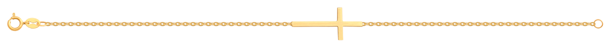 ID: #37243 symbol: Br062 EAN: 5900025372432 długość: 19 cm szerokość: 11.1 mm wysokość: 24 mm uwagi: Delikatna bransoletka z krzyżykiem.Wymiary szer.i wys.dotyczą krzyżyka.Możliwość regulacji do 18cm.