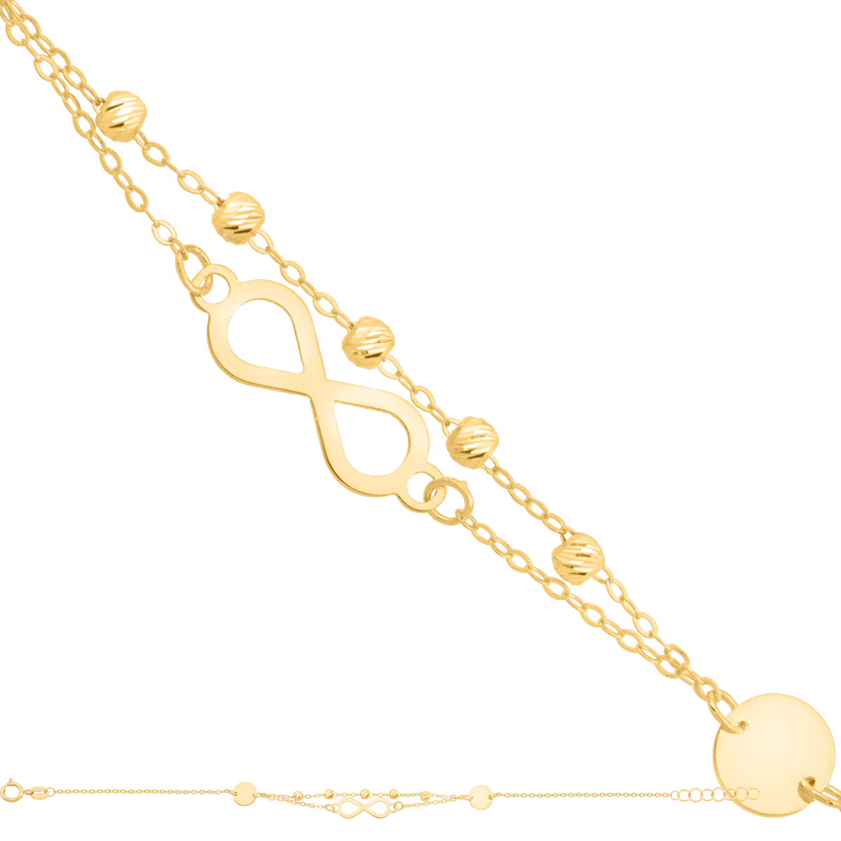 ID: #52389 symbol: Br705 EAN: 5900025523896 długość: 19 cm szerokość: 12.7 mm wysokość: 5 mm uwagi: Ankrowa bransoletka z ozdobnymi elemencikami. Możliwość regulacji długości do 17 cm. średnica: 2.4 mm