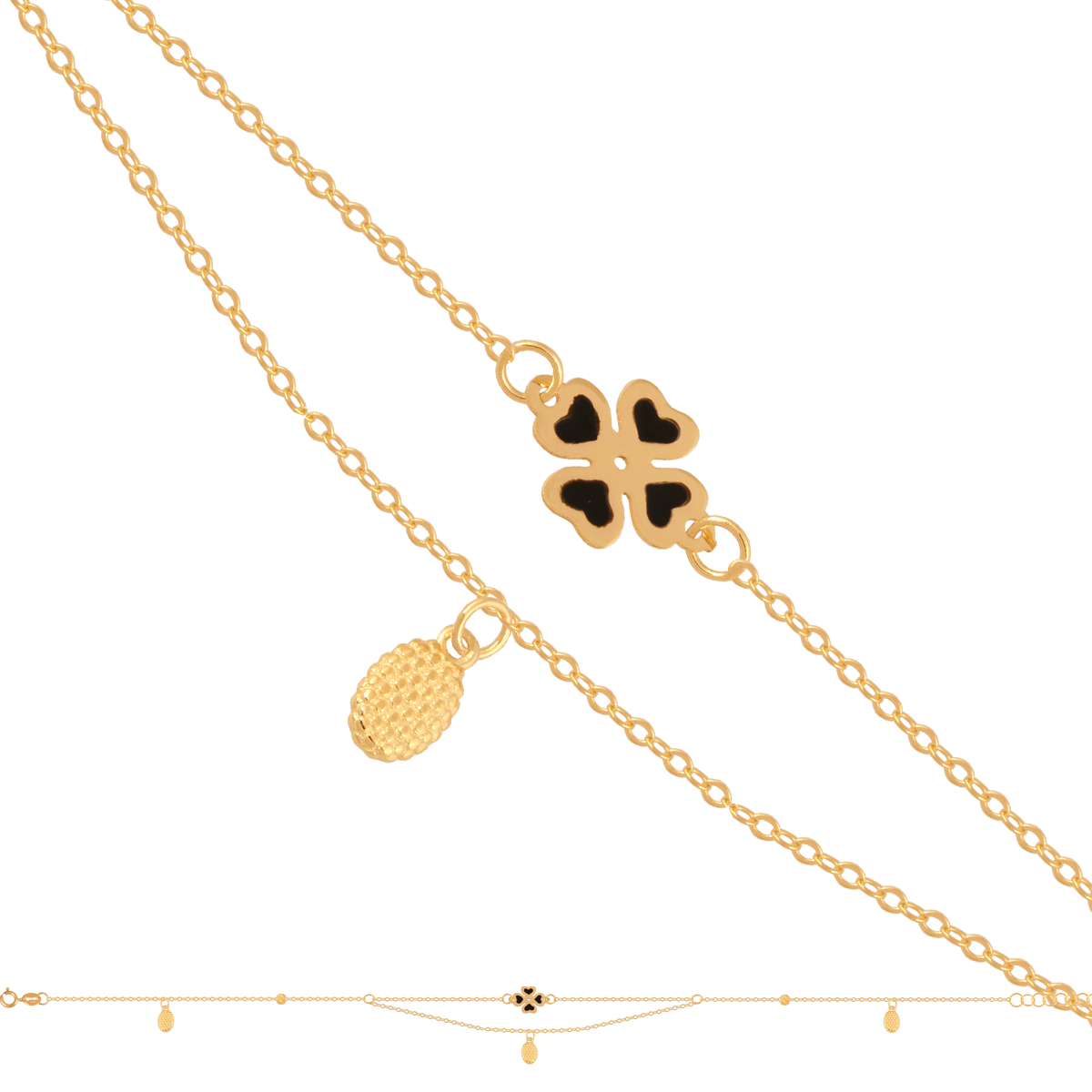 uwagi: Ankrowa bransoletka z zawieszkami i wstawką dodatkowego łańcuszka i czarnej koniczynki Regulacja do 22cm.