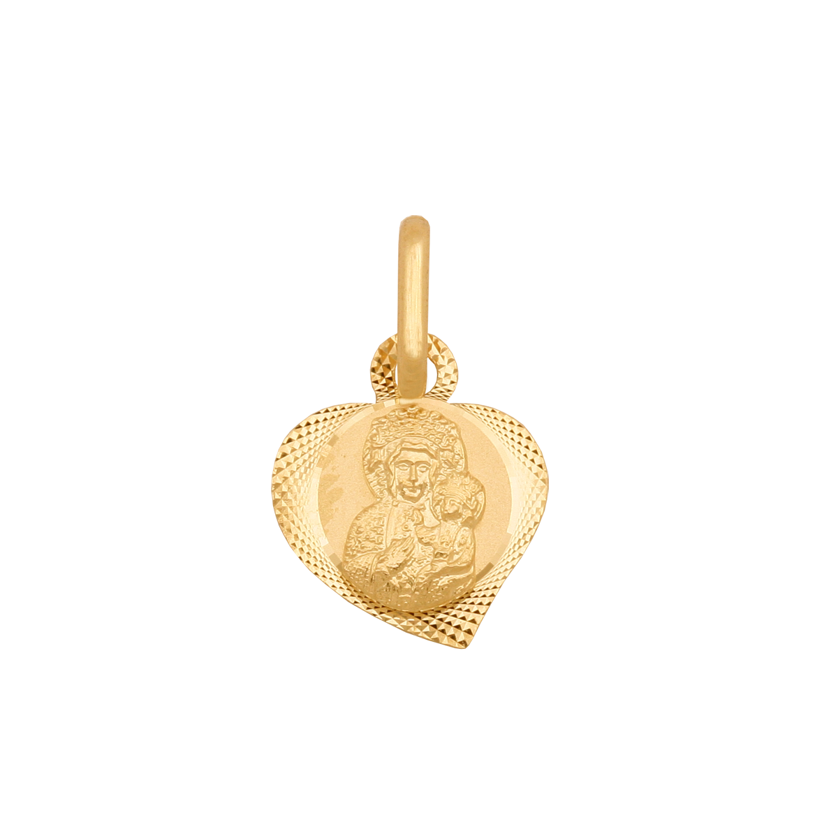 uwagi: Medalik w kształcie serduszka z wizerunkiem Matki Boskiej Częstochowskiej.Z tyłu pełny.