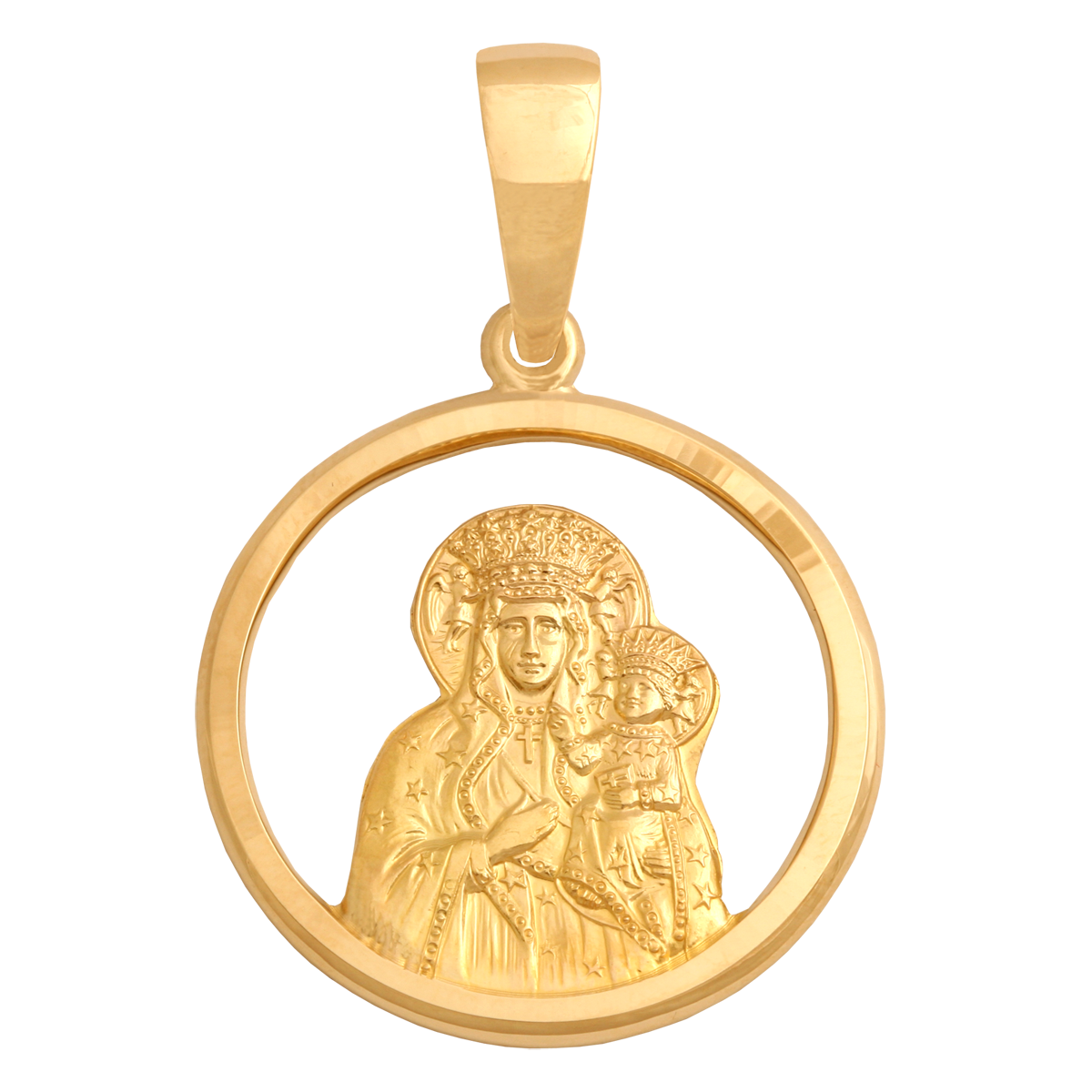 uwagi: Duży medalik z wizerunkiem Matki Boskiej Częstochowskiej,otoczony okrągłą ramką.Tył wizerunku pełny.