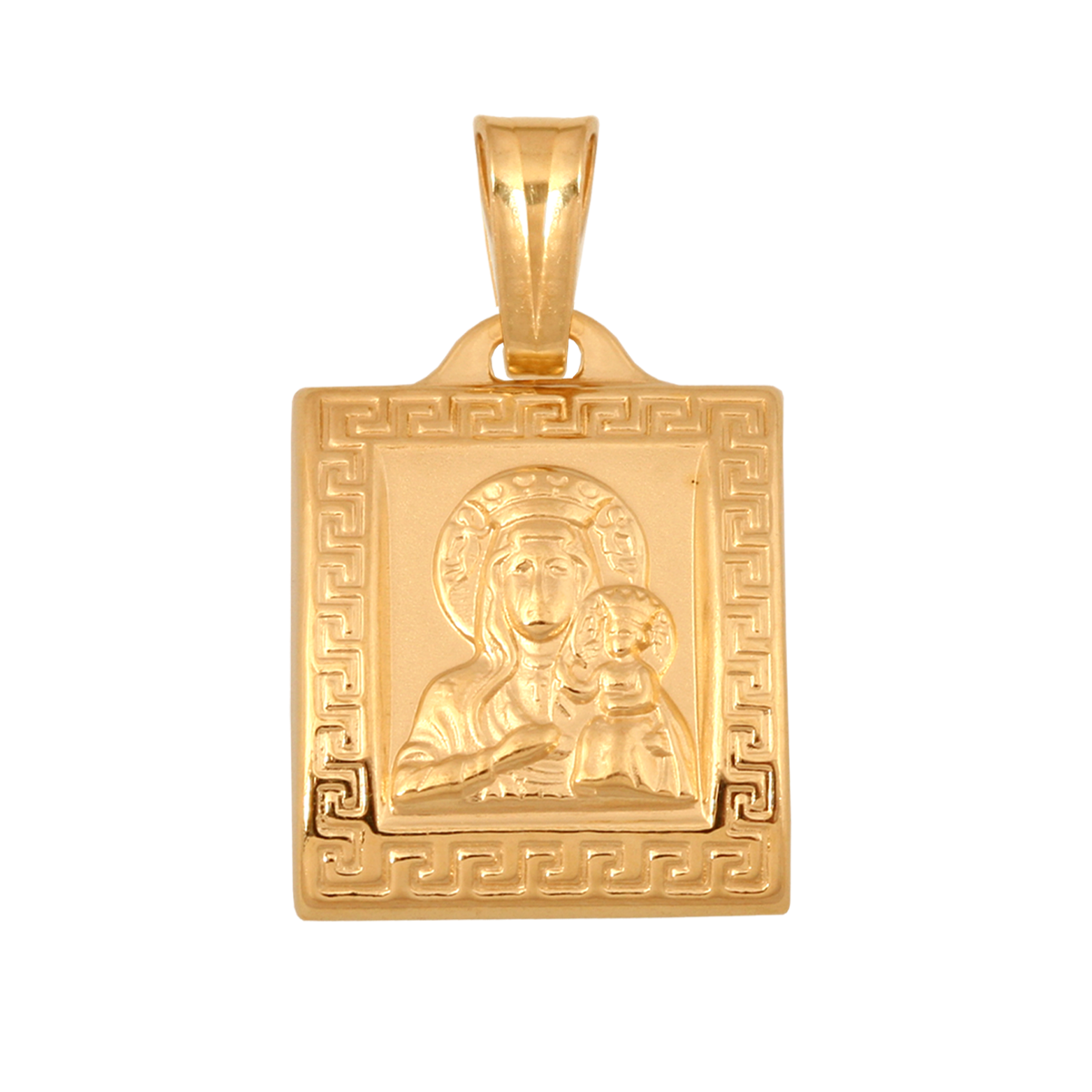 uwagi: Medalik z wizerunkiem Matki Boskiej Częstochowskiej, otoczony ramką z greckim wzorem. Tył wklęsły.
