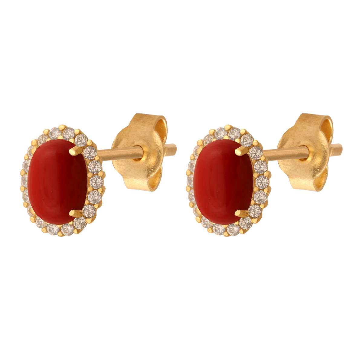 uwagi: Kolczyki z koralem, otoczonym rzędem cyrkonii. Podane wymiary dotyczą centralnego kamienia