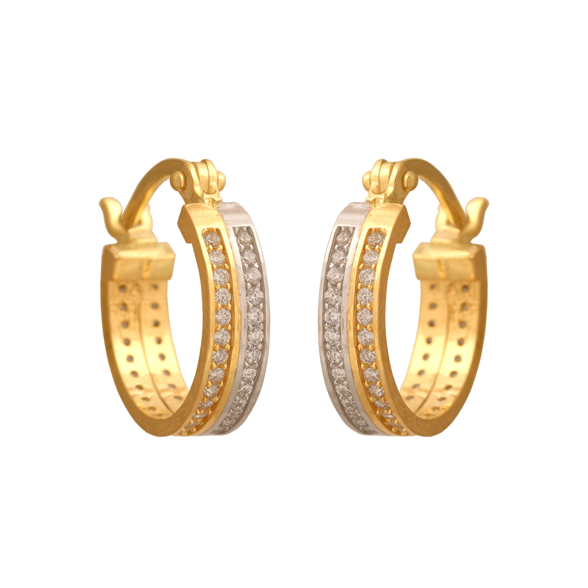 uwagi: Kolczyki z dwoma rzędami cyrkonii w połączeniu żółtego i białego złota.