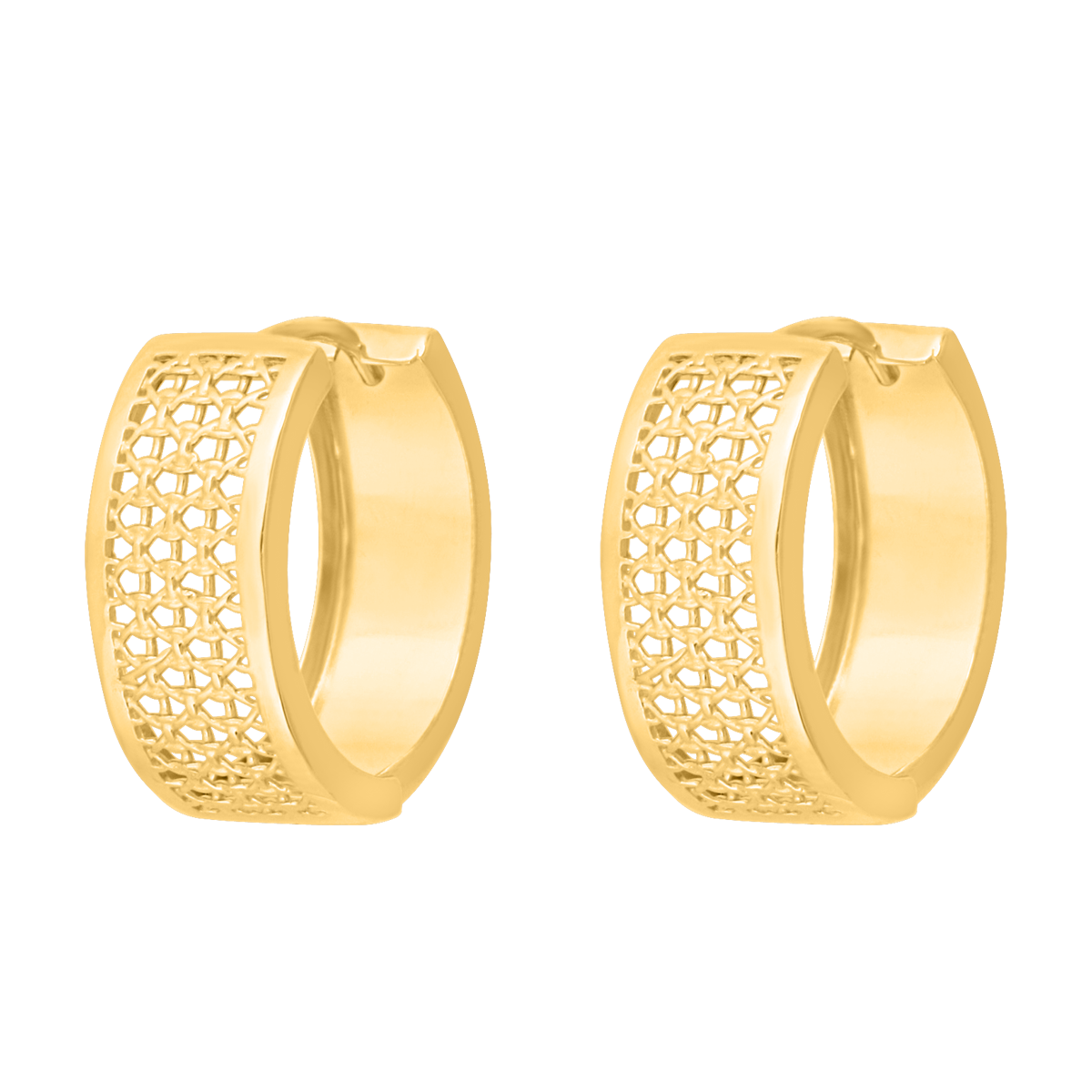 ID: #59927 symbol: 59927 EAN: 5900025599273 szerokość: 7.4 mm uwagi: Kolczyki oponki w połowie zdobione siateczką. Dwustronne.