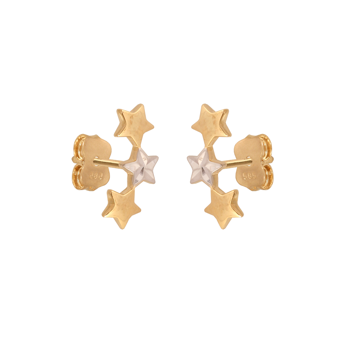 uwagi: Kolczyki trzy połączone gwiazdki w żółtym i białym kolorze złota.