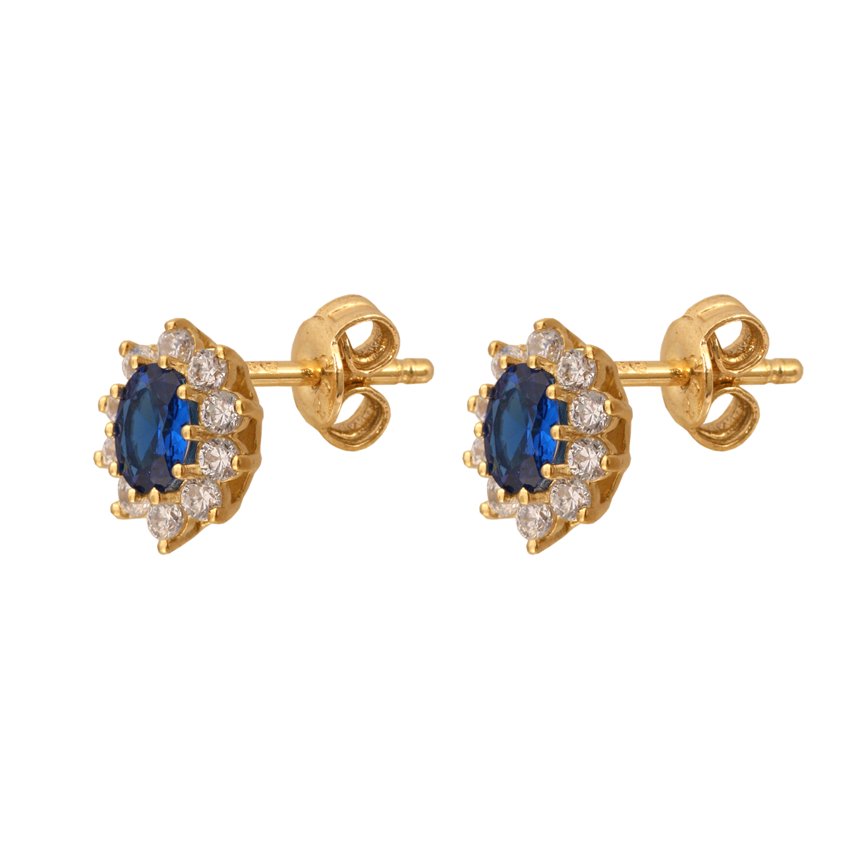 uwagi: Kolczyki markizy z granatowymi kamieniami i cyrkoniami w około.