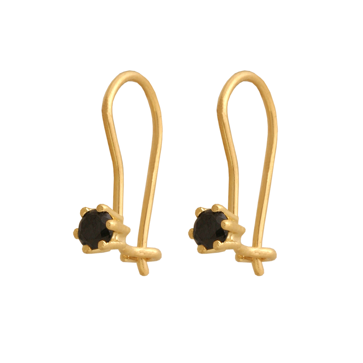 uwagi: Delikatne kolczyki z czarnym kamieniem oprawionym w złoty koszyczek.
