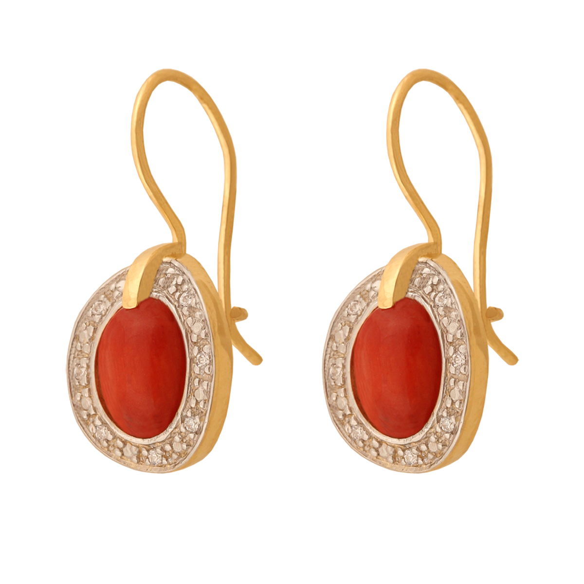 uwagi: Kolczyki z koralem otoczonym wianuszkiem cyrkonii.