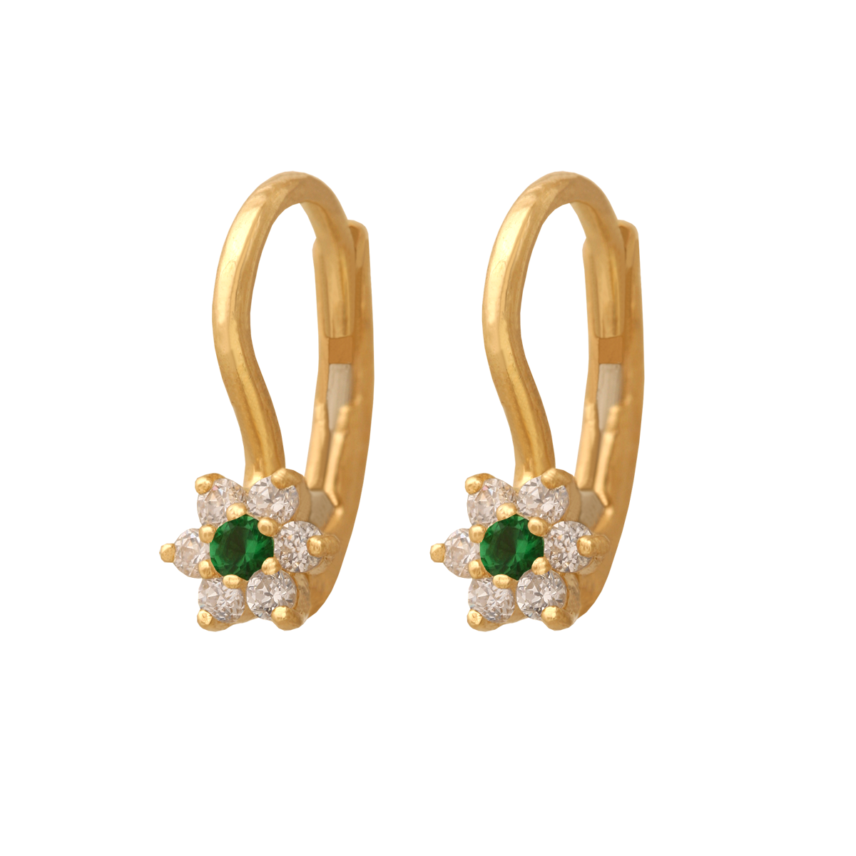 uwagi: Kolczyki kwiatuszki z cyrkoniami i centralnym kamieniem w kolorze szmaragdu.