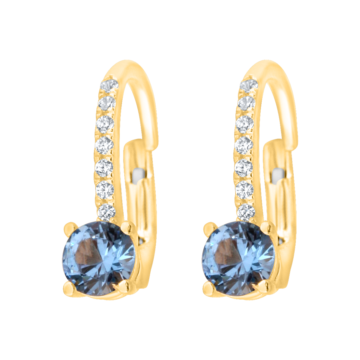 uwagi: wiszące kolczyki z cyrkoniami i centralnym kamieniem w kolorze błękitu
