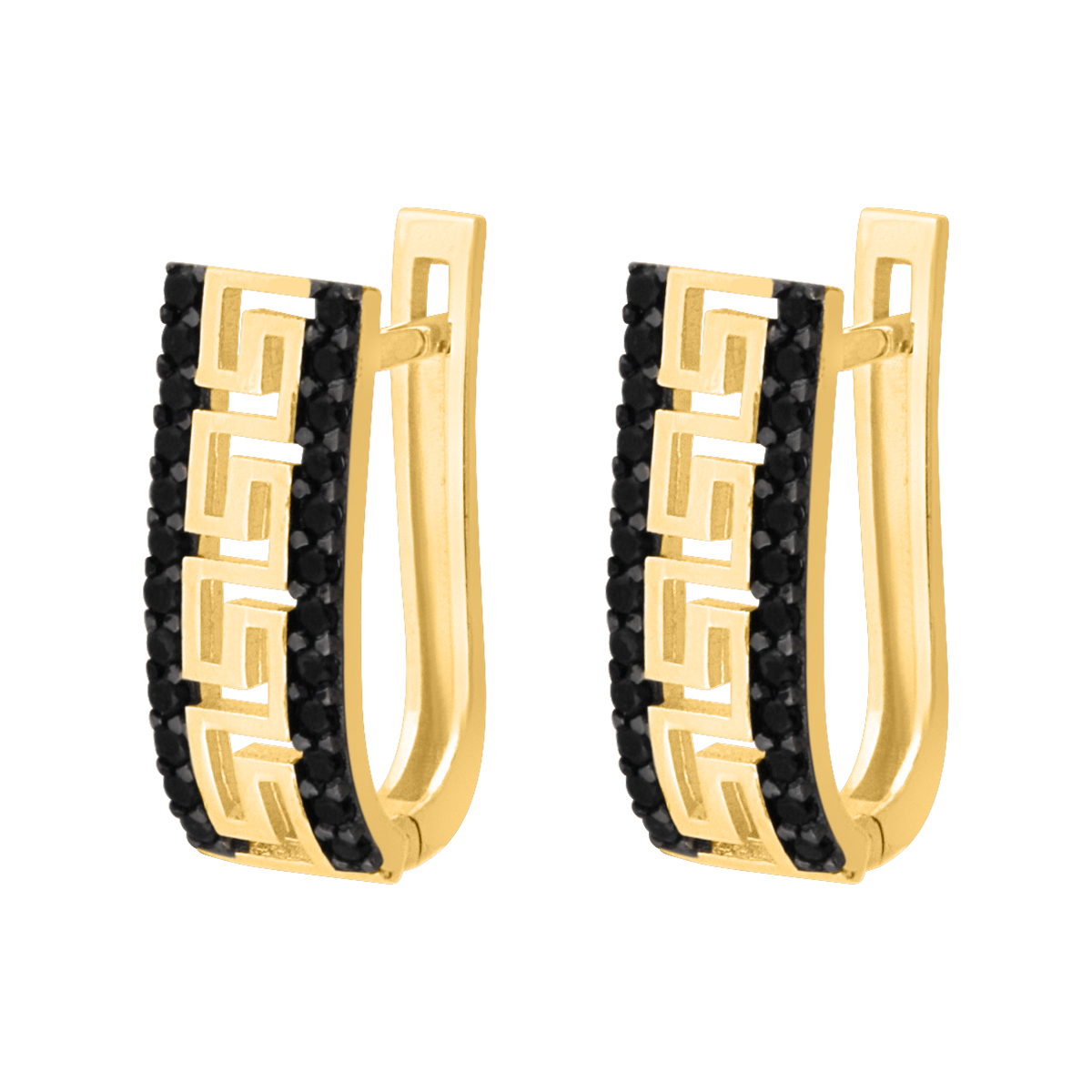 uwagi: Kolczyki z wzorem greckiej drogi i rzędami czarnych kamieni.