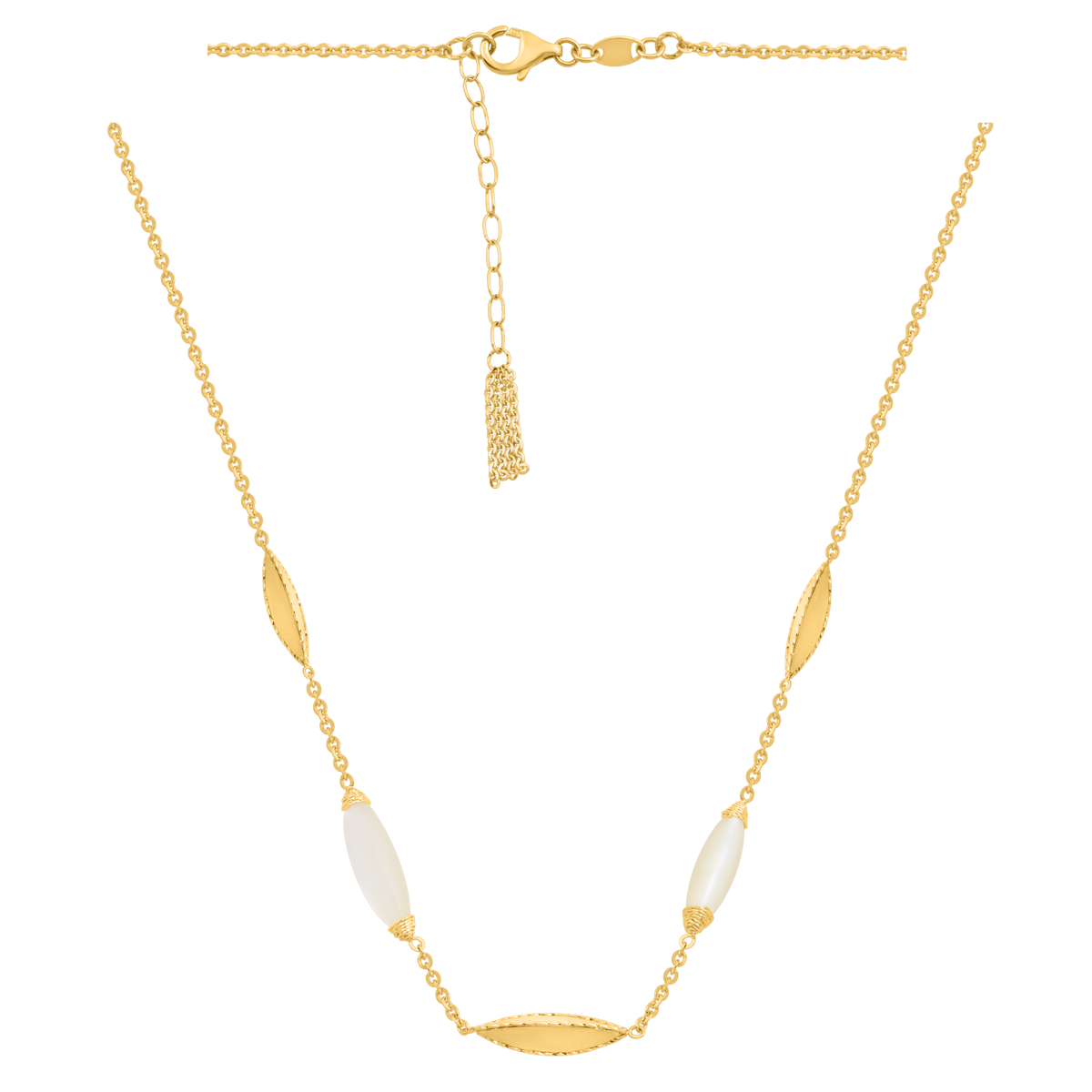 ID: #18633 symbol: 18633 EAN: 5900025186336 długość: 47 cm uwagi: Naszyjnik z finezyjnymi, przestrzennymi elementami złotymi i z masy perłowej. Możliwość regulacji długości do 43 cm. ![]() |
