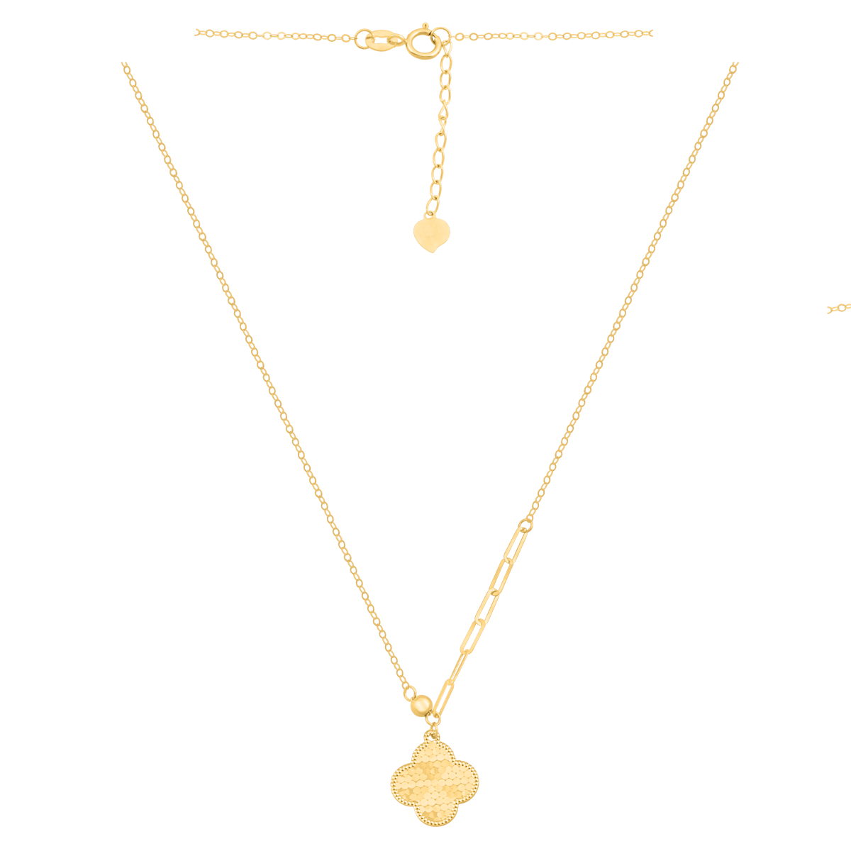 uwagi: Modny naszyjnik o ankrowym splocie blaszkową, zdobioną koniczynką. Dodatkowo zdobiony kuleczką i wstawką łańcuszka typu claps. Możliwość regulacji do 42cm.