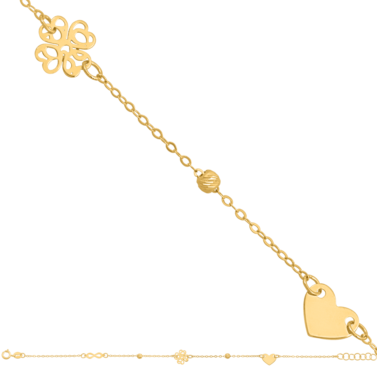 uwagi: Naszyjnik z pełnym serduszkiem, ażurową koniczynką oraz nieskończonością . Możliwość regulacji długości do 42cm.