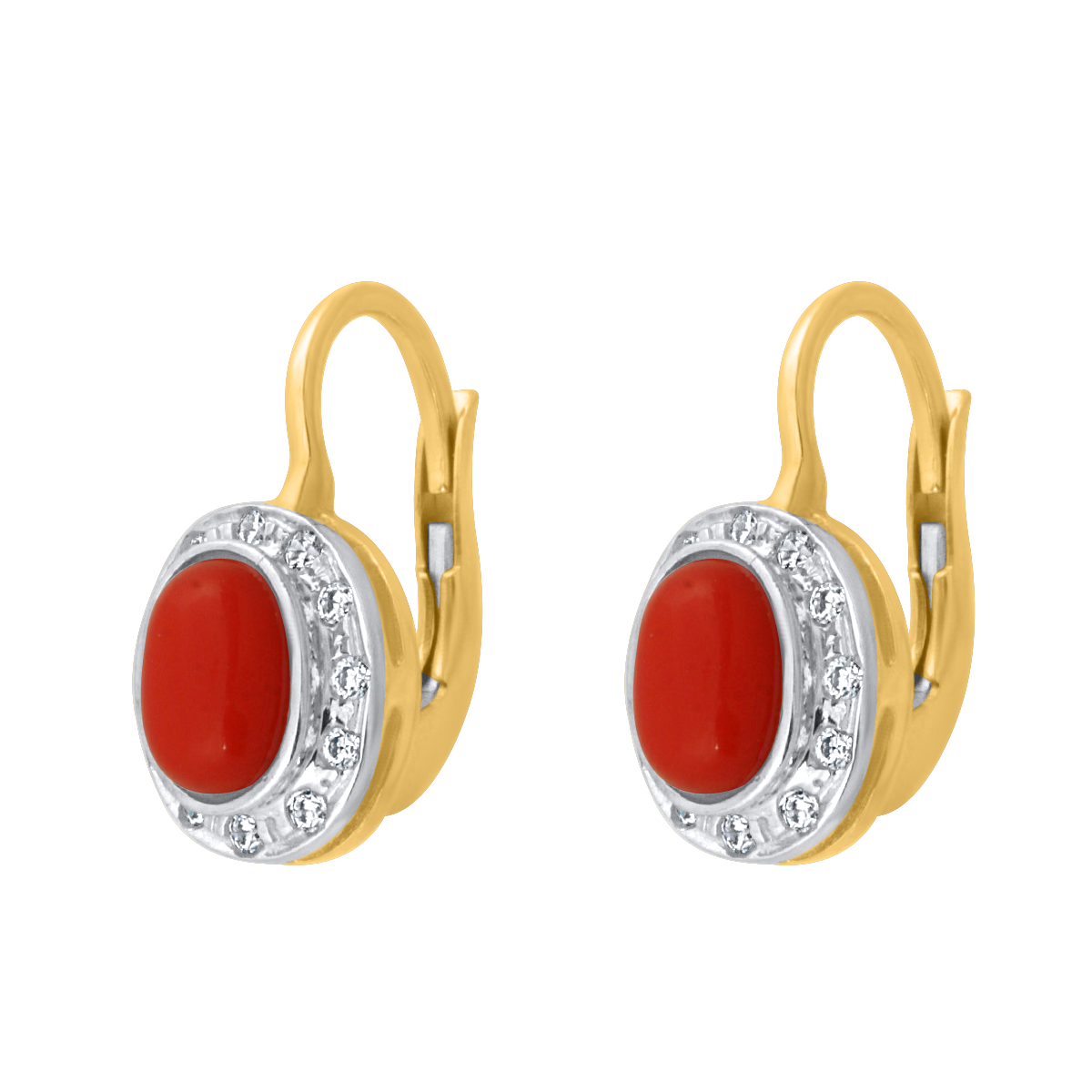 uwagi: Kolczyki z koralem i cyrkoniami oprawionymi w białe złoto.