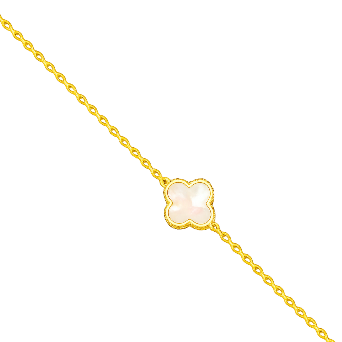 Kod Auchan: 3980 ID: #31213 symbol: 31213 EAN: 5900025312131 długość: 18 cm uwagi: Bransoletka z koniczynką z masą perłową.