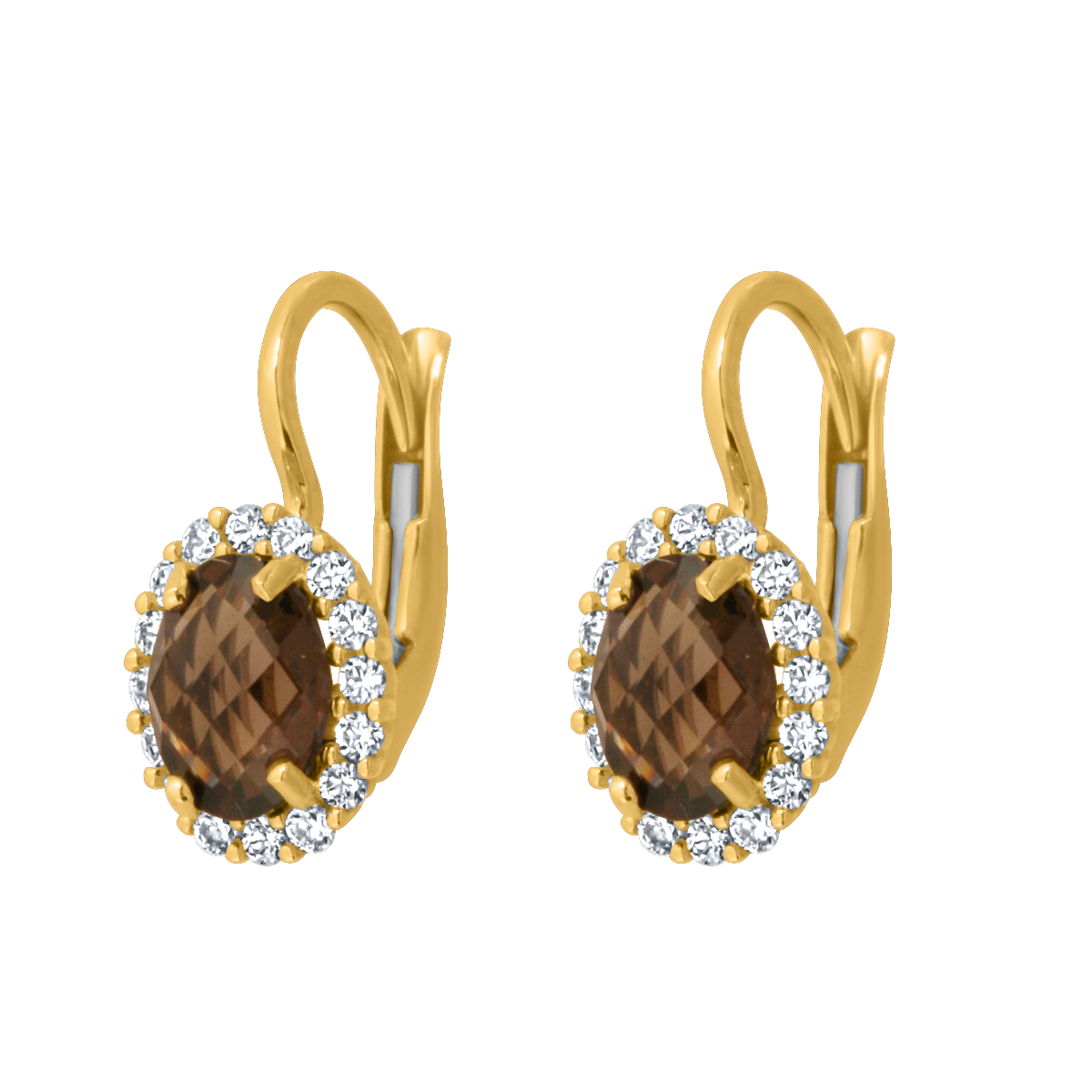 uwagi: Kolczyki z kamieniami w kolorze dymnego kwarcu i cyrkoniami. Wymiary szer. i wys. element dotyczą centralnego kamienia.