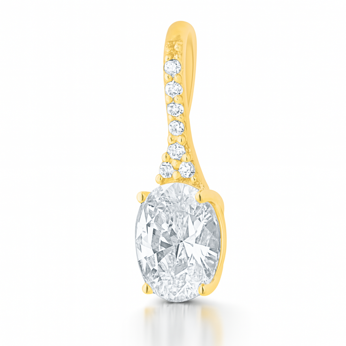 uwagi: Przywieszka z owalną cyrkonią oprawioną w cztery łapki. W koluszku malutkie cyrkonie.