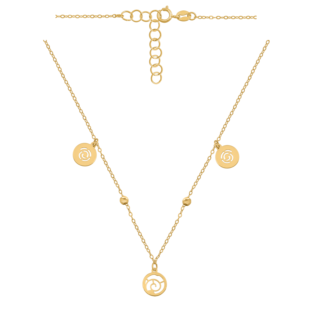 uwagi: Naszyjnik łańcuszkowy z 3 centkami i 2 kuleczkami. Możliwość regulacji 42cm