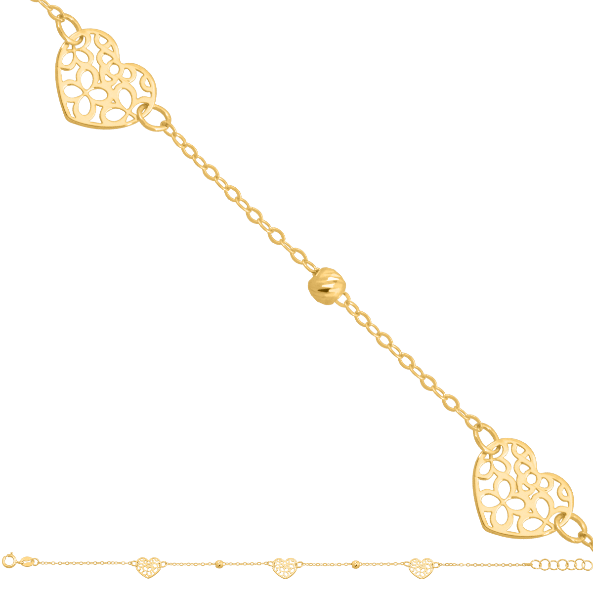 uwagi: Bransoletka łańcuszkowa z ażurowymi serduszkami i kuleczkami