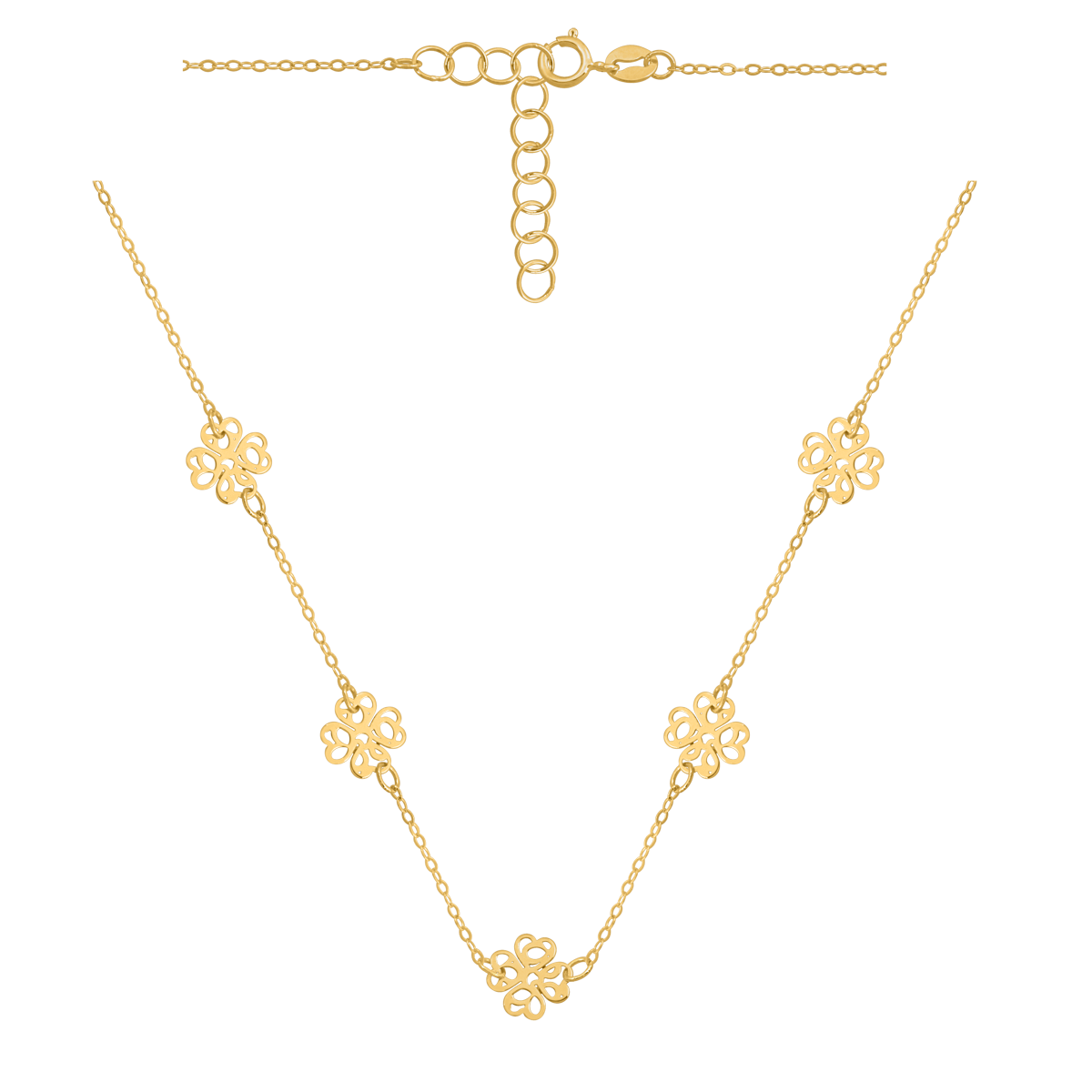 uwagi: Naszyjnik na łańcuszku z fantazyjnymi ażurowymi koniczynkami