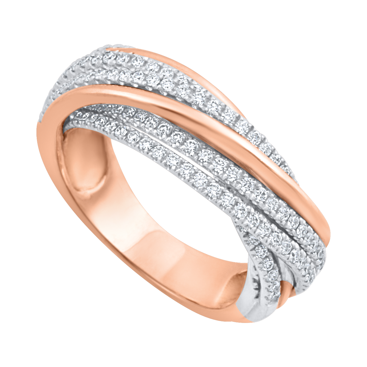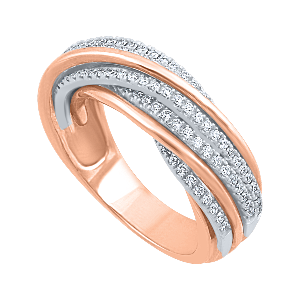 uwagi: Finezyjny pierścionek w połączeniu różowego i białego złota z brylantami.