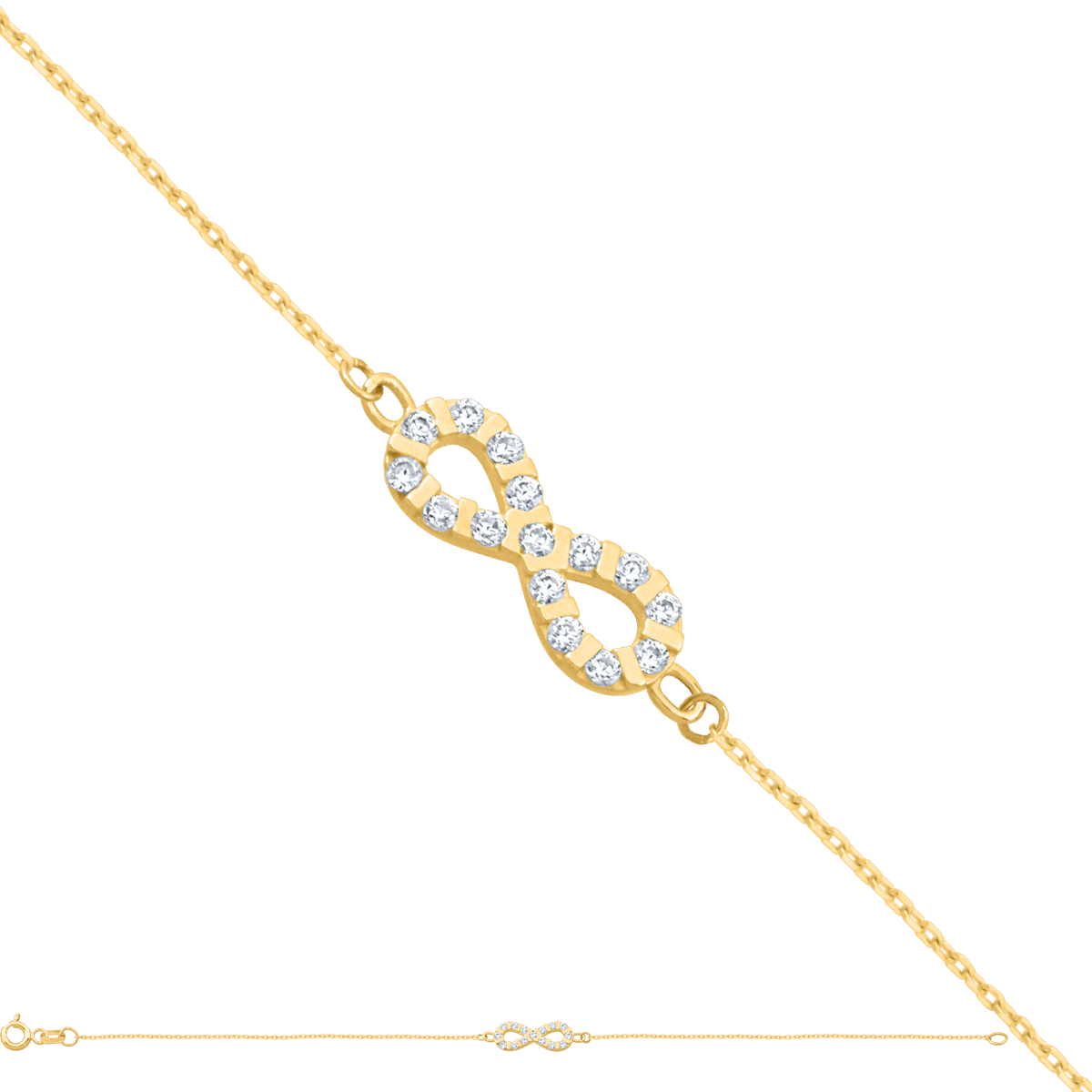 uwagi: Bransoletka o ankrowym splocie z nieskończonością z cyrkoniami.