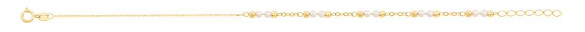 uwagi: Modna bransoletka o ankrowym splocie z perełkami i grawerowanymi złotymi kuleczkami. Możliwość regulacji do 17cm.