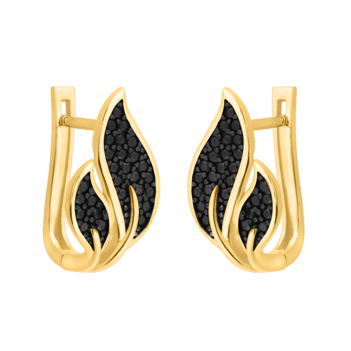 uwagi: Kolczyki w formie listków z czarnymi kamieniami.