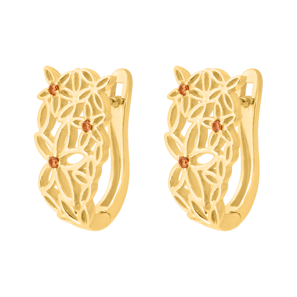 uwagi: Fantazyjne kolczyki z ażurowym wzorem kwiatów i kamieniami w kolorze szampańskim.