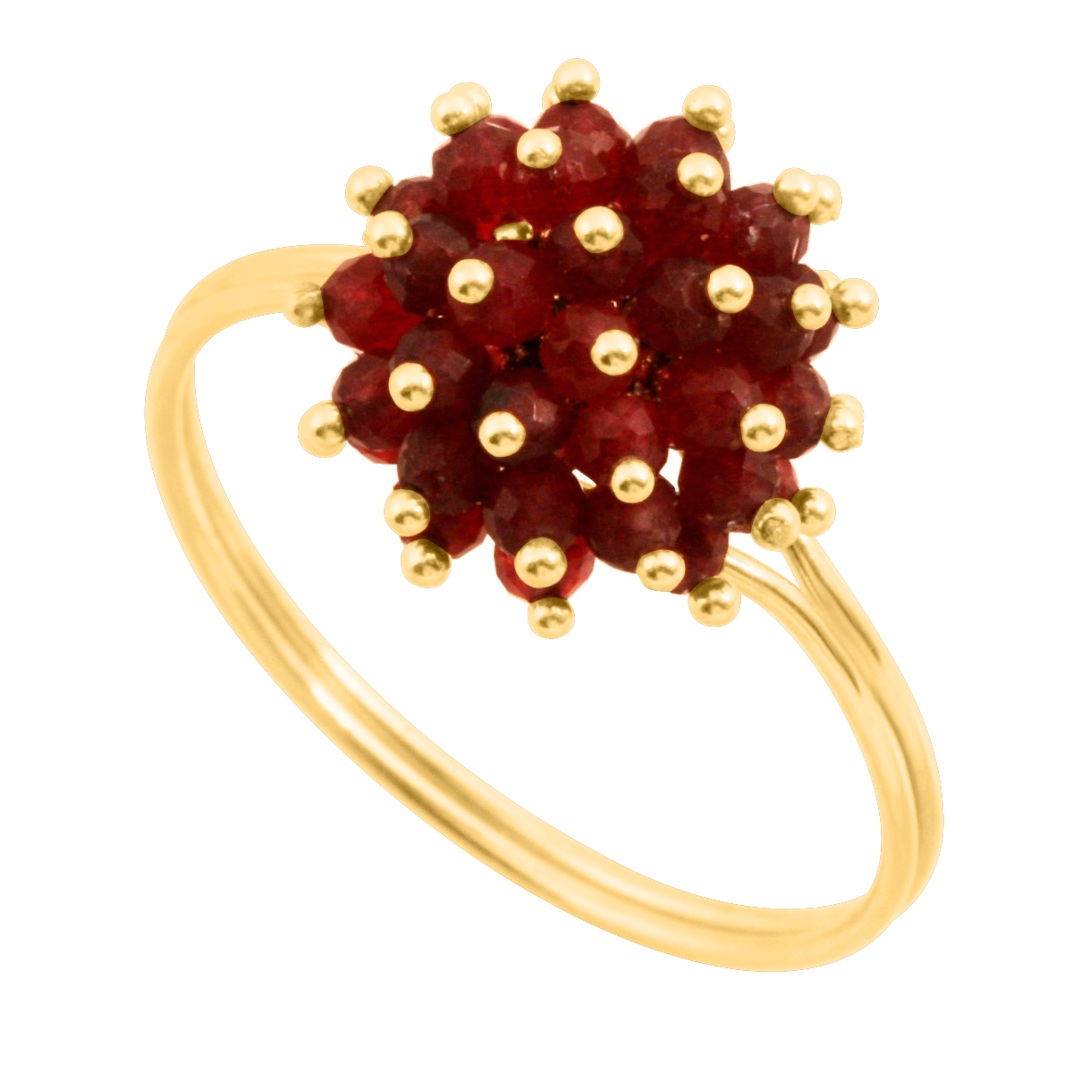 ID: #3592 symbol: Pa046 EAN: 5900025035924 uwagi: Pierścionek "maczuga" z kamieniami w kolorze rubinu. średnica: 20 mm