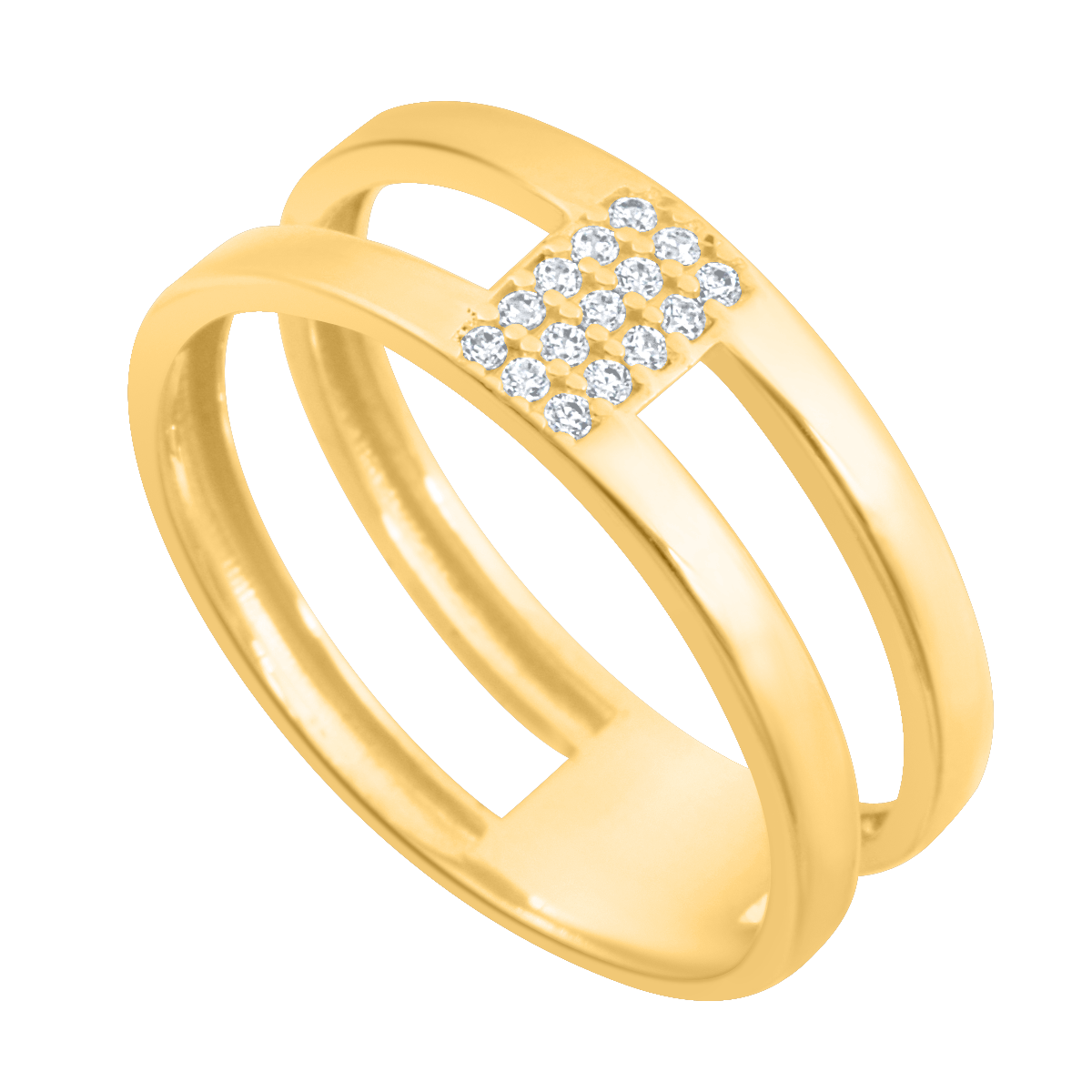 ID: #61518 symbol: Pa060 EAN: 5900025615188 szerokość: 6.8 mm uwagi: nowoczesny pierścionek z podwójną szyną i rzędem cyrkoni na srodku średnica: 20 mm