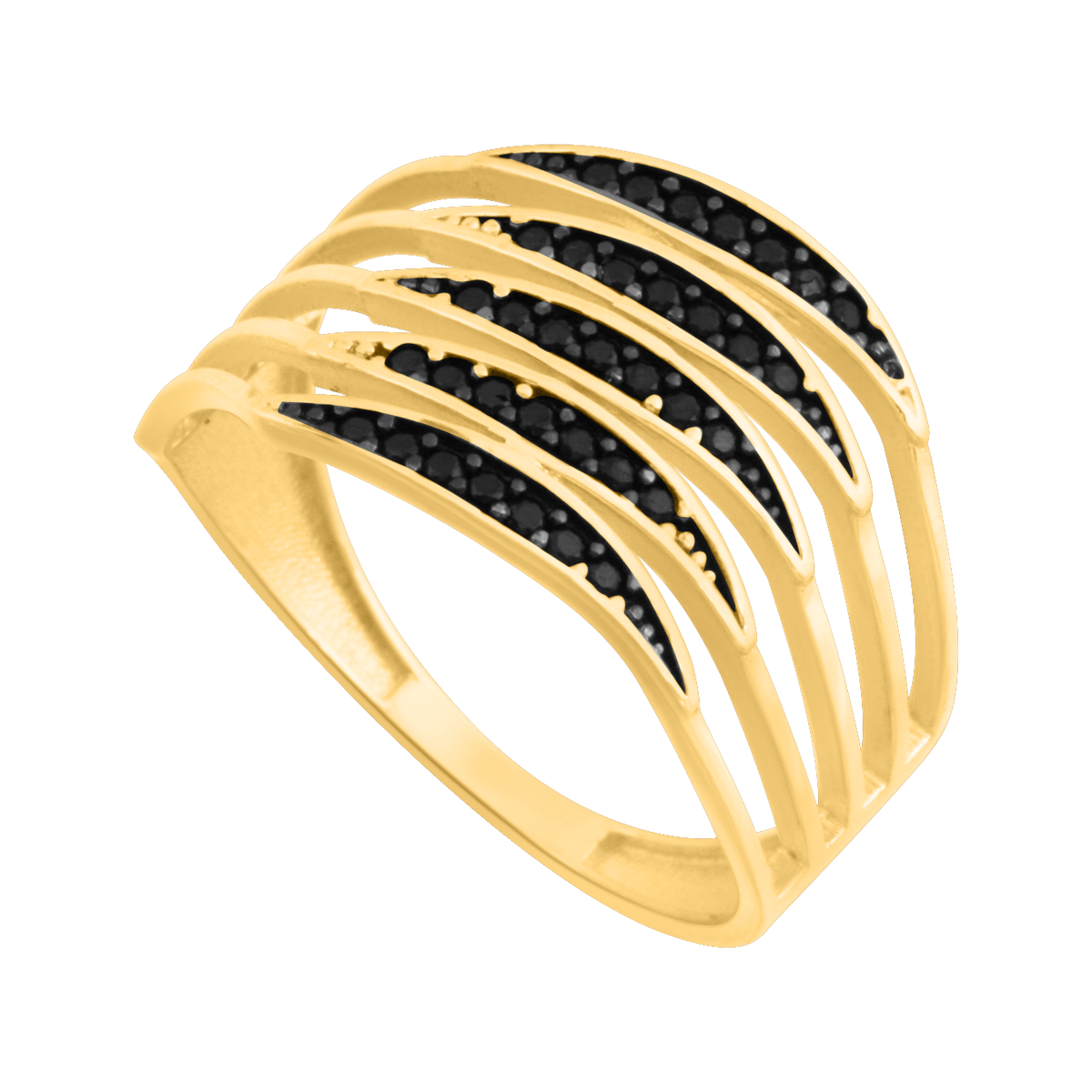 ID: #61721 symbol: Pa070 EAN: 5900025617212 szerokość: 12.5 mm uwagi: Efektowny pierścionek z rzędów fal z czarnymi kamieniami. średnica: 23 mm
