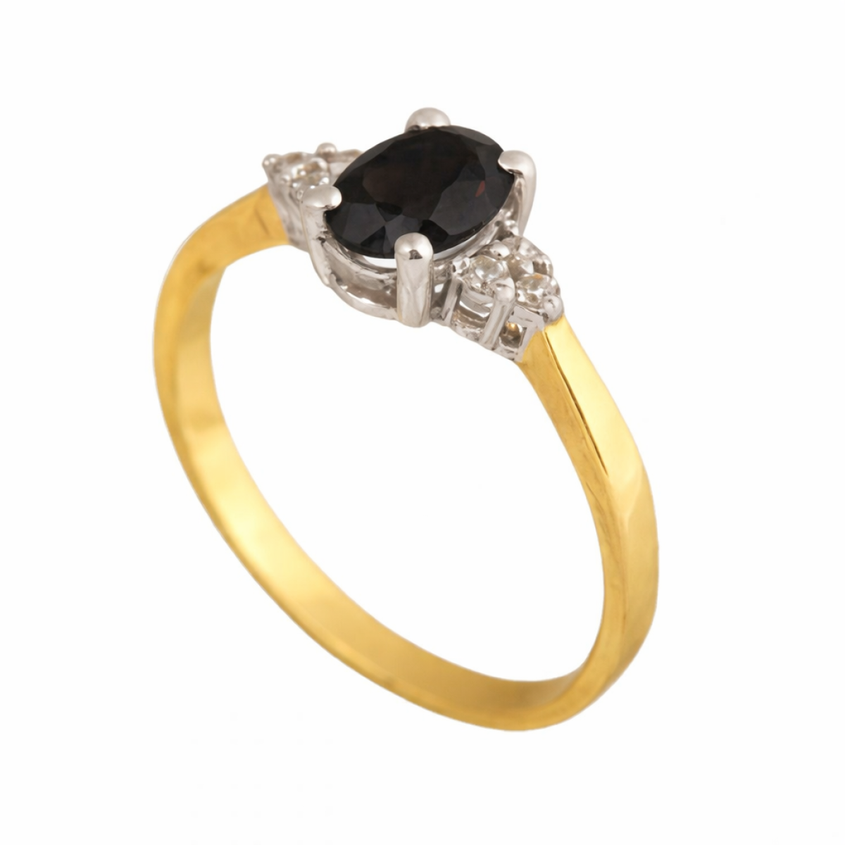 uwagi: Pierścionek z centralnym, owalnym kamieniem w czarnym kolorze i malutkimi cyrkoniami po bokach.