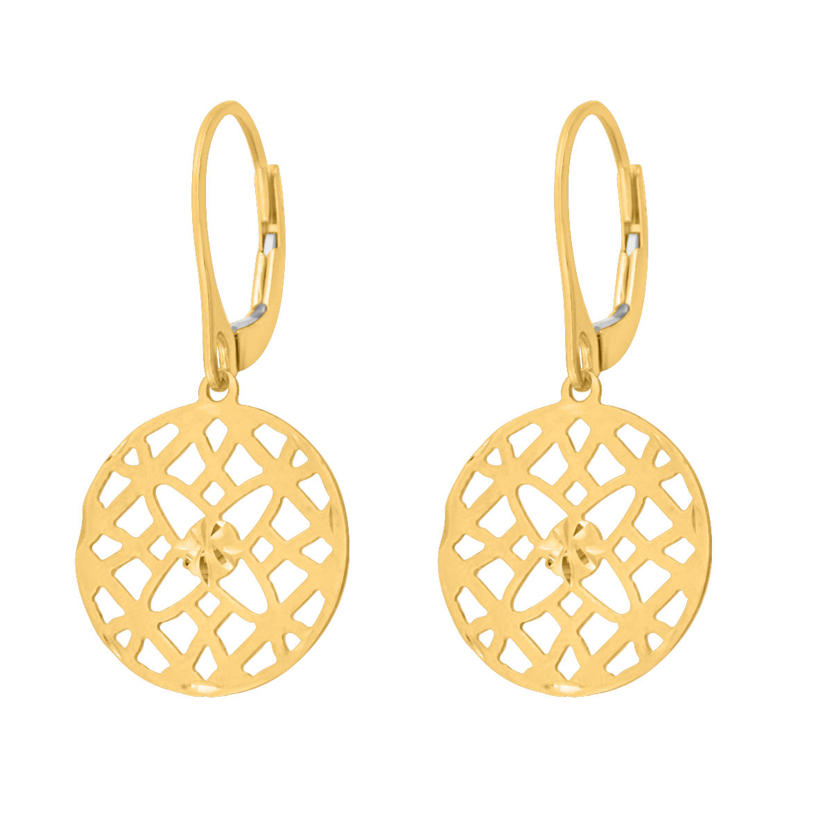uwagi: Kolczyki z wiszącymi blaszkowymi ażurkowymi elementami.