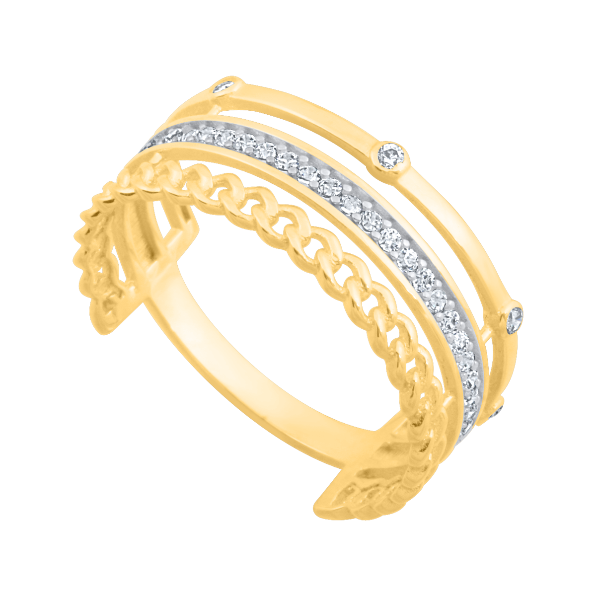 uwagi: Pierścionek z trzech różnych złączonych obrączek. zdobiona cyrkoniami.