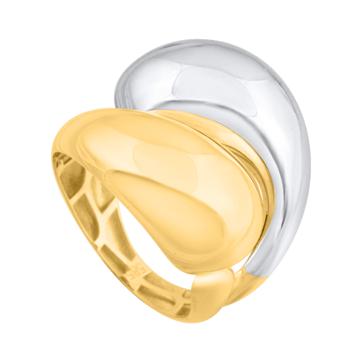 uwagi: Pierścionek z fantazyjnych pękatych łezek, jedna z białego złota.