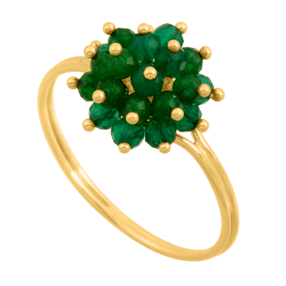uwagi: Pierścionek "maczuga" z kamieniami w kolorze szmaragdu.