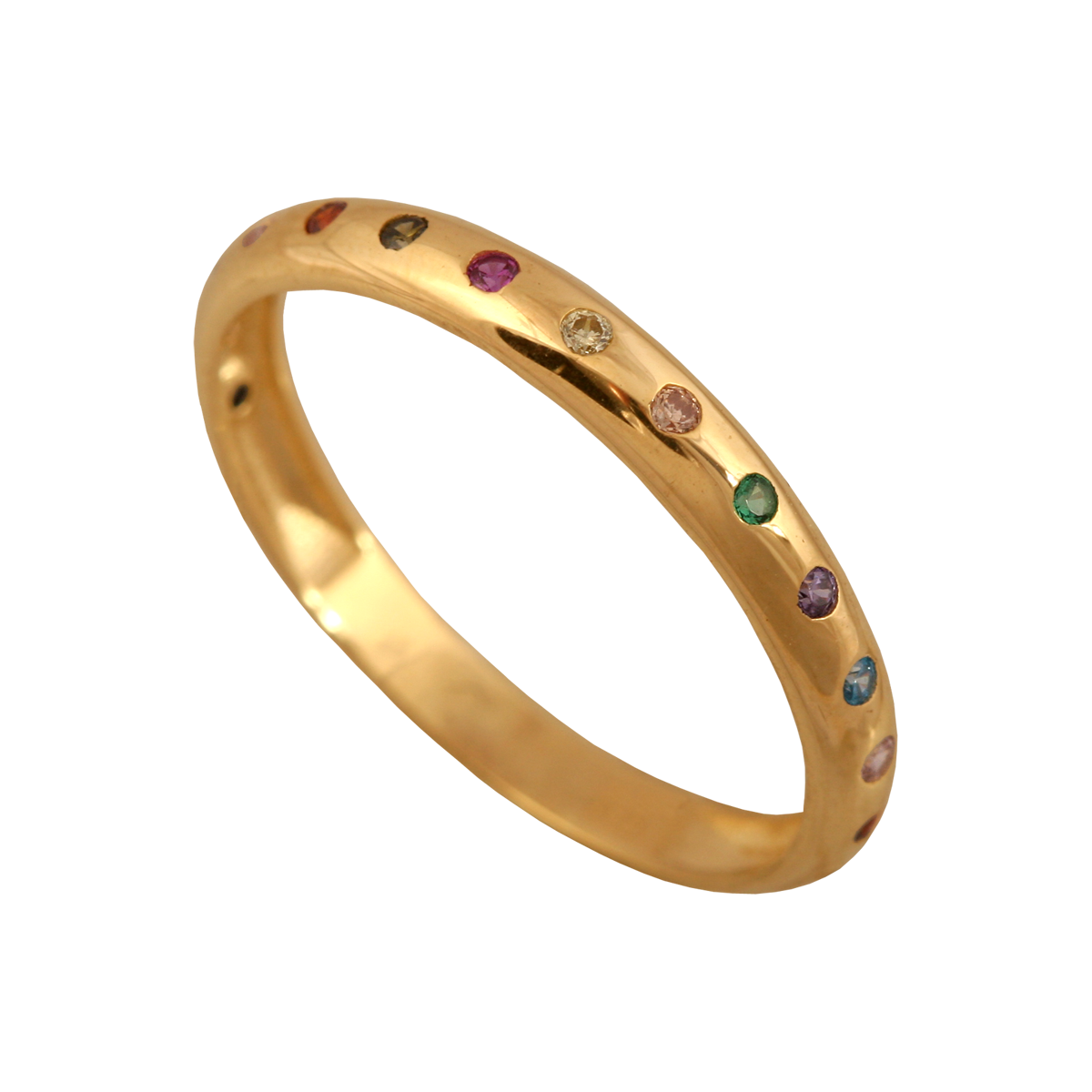 ID: #57398 symbol: Pi600 EAN: 5900025573983 szerokość: 2.5 mm uwagi: Pierścionek w formie obrączki z kolorowymi kamieniami. średnica: 14 mm