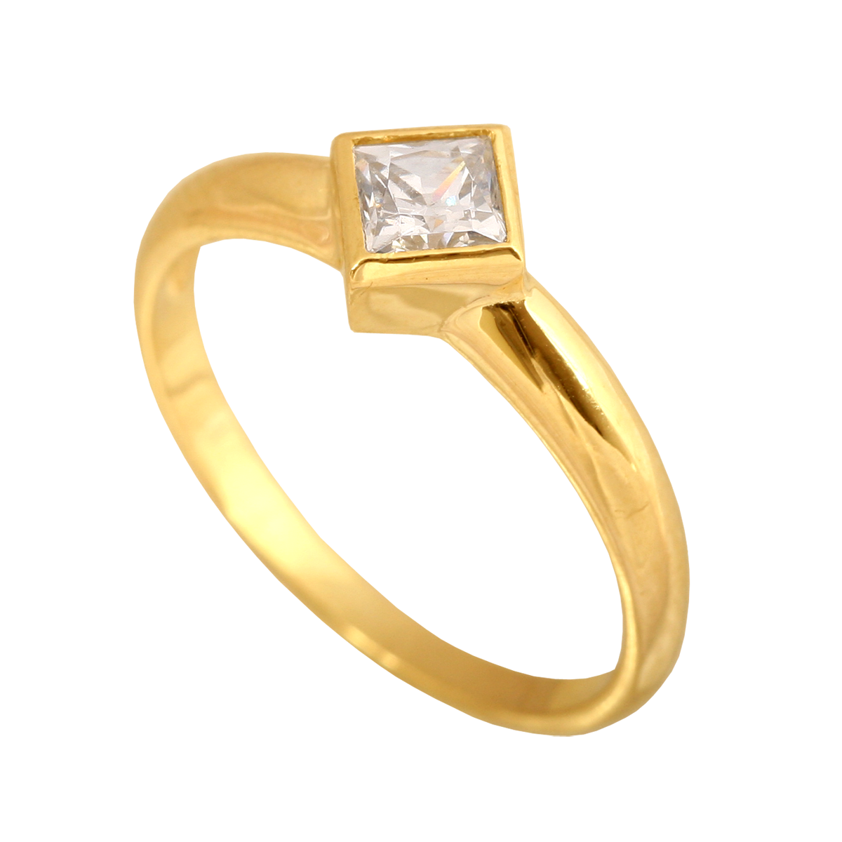 ID: #60734 symbol: Pi094 EAN: 5900025607343 uwagi: Pierścionek z cyrkonią w kształcie rombu oprawioną w złotą ramkę. średnica: 15 mm