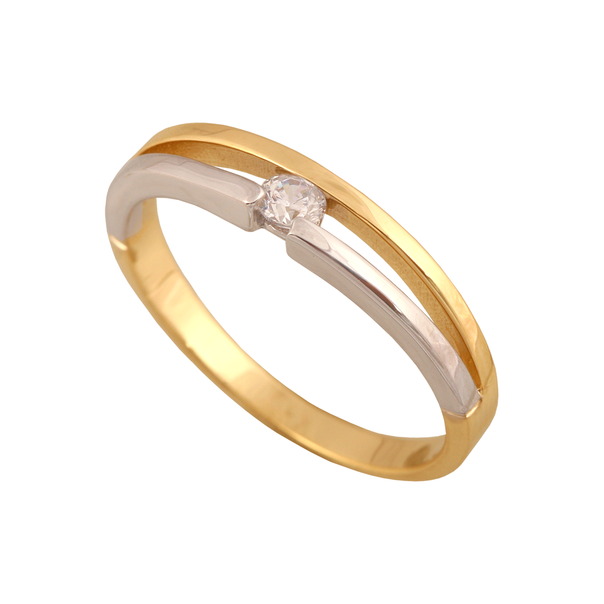 ID: #55824 symbol: Pi606 EAN: 5900025558249 szerokość: 4 mm uwagi: Pierścionek w kształcie obrączki z żółtego i białego złota z cyrkonią. średnica: 12 mm
