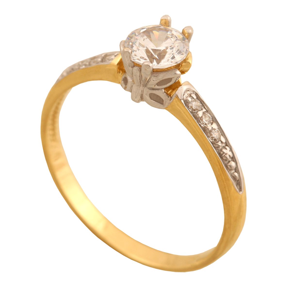 ID: #43196 symbol: Pn789 EAN: 5900025431962 uwagi: Pierścionek z ciekawie oprawioną centralną cyrkonią.Oprawa w kształcie motylka.W obrączce oprawione małe cyrkonie.Połączenie żółtego i białego złota. średnica: 14 mm