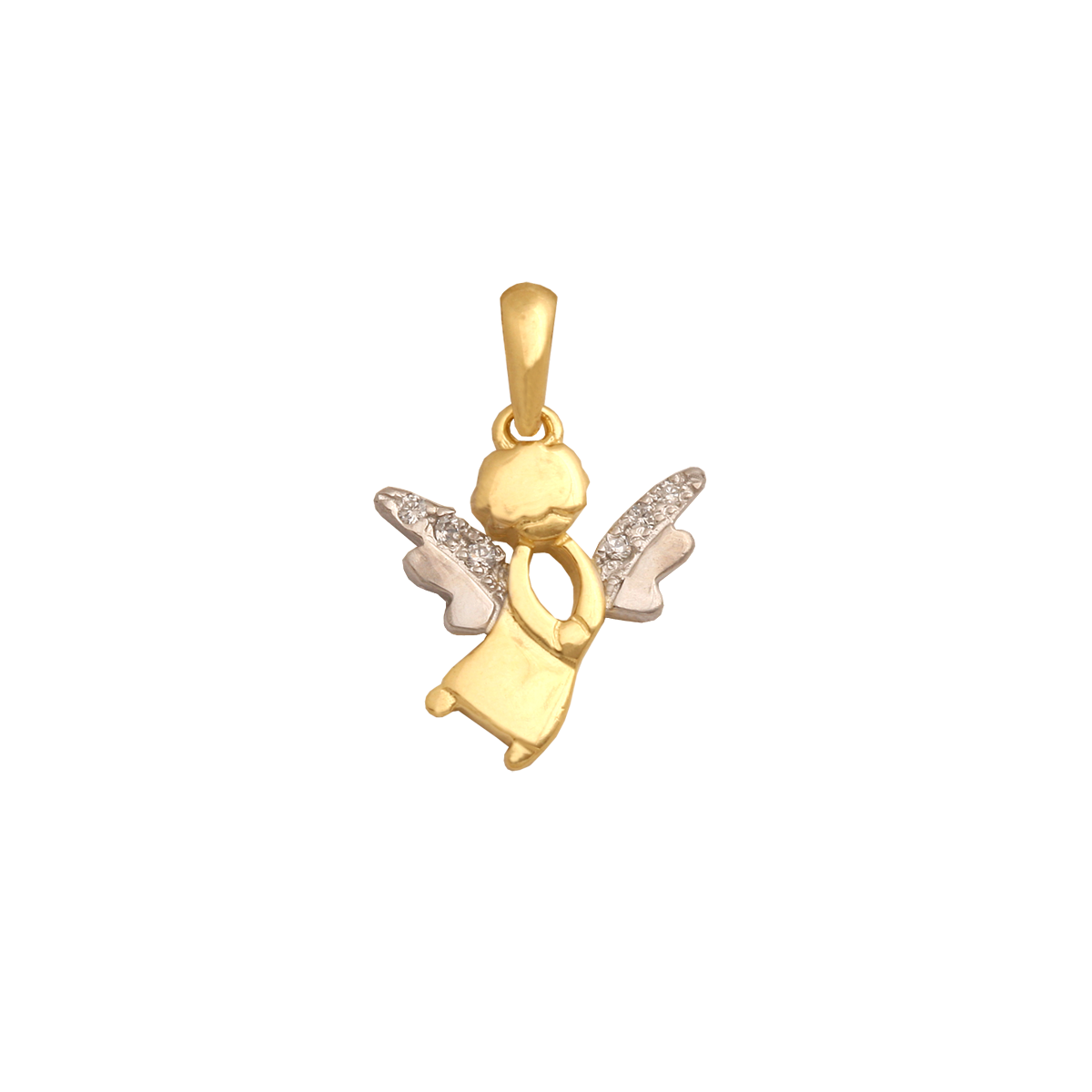 uwagi: Przywieszka w kształcie aniołka z cyrkoniami.Połączenie żółtego i białego złota.