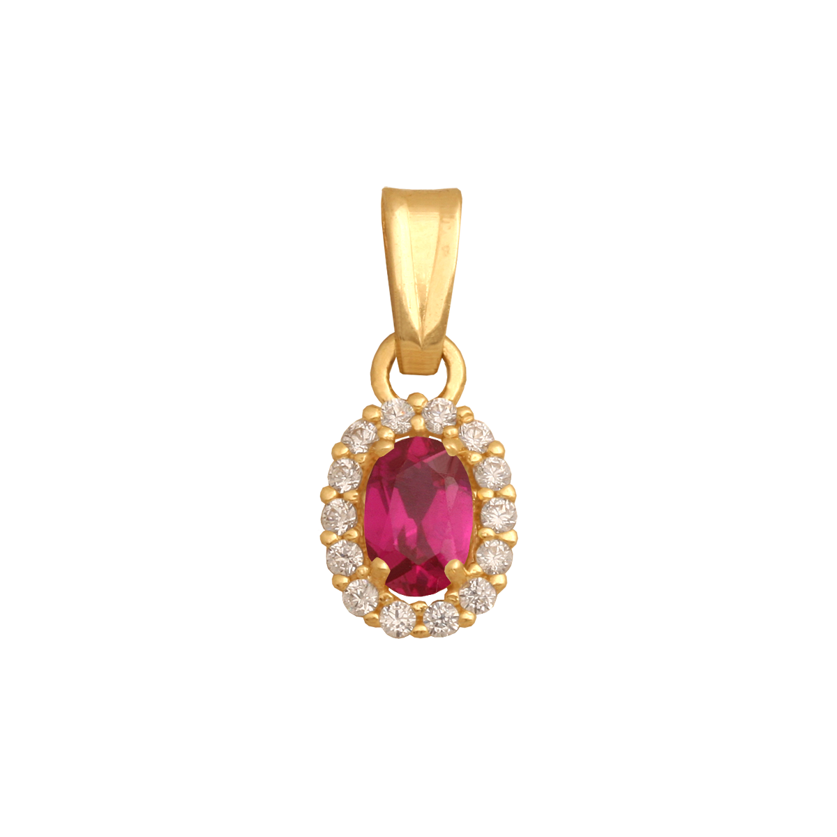 uwagi: Przywieszka z owalnym kamieniem w kolorze rubinu,otoczony wianuszkiem cyrkonii.Wymiary dotyczą centralnego kamienia.