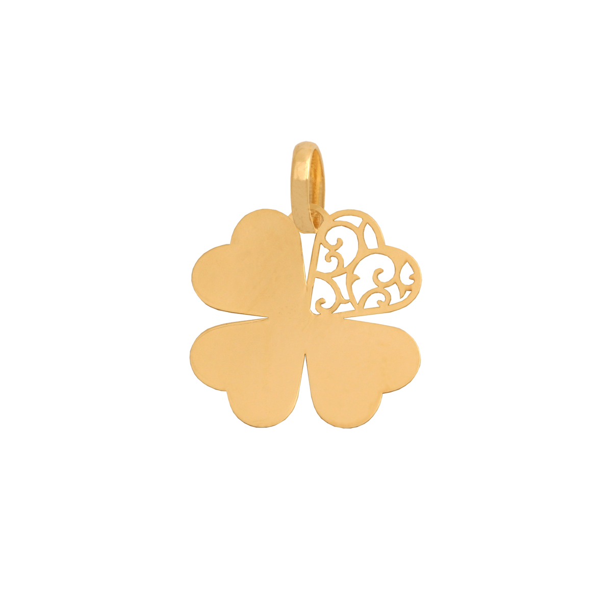 uwagi: Przywieszka w kształcie czterolistnej koniczynki.Jeden płatek ażurowy.Pozostałe trzy z przodu i z tyłu gładkie,błyszczące.